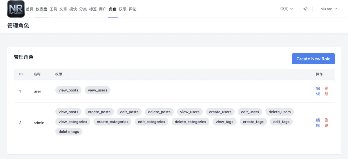 角色管理:角色的管理,指定改角色拥有哪些权限