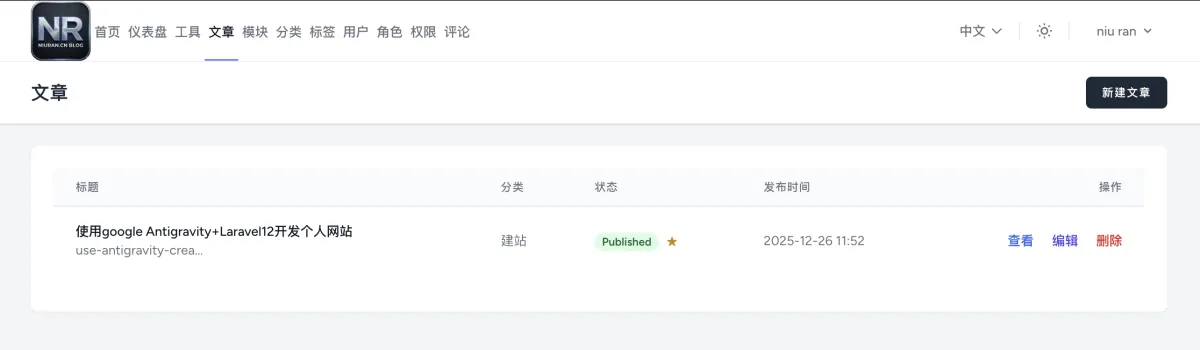 AI技术发展日新月异,最近,我一直在研究Antigravity的使用技巧。首先,我先使用它开发了微信小游戏《方块光年》,但由于Antigravity只支持Web端的自动化测试,微信小游戏的测试只能依赖人工,还不能发挥其最大实力。 所以我计划建立一个个人网站,使用自己最熟悉的技术栈——LNMP,选取了最新的laravel12.4框架。 我发现,如果你使用AI来使用你不熟悉的技术,那仅仅属于探索的范畴。相反,如果你使用AI来用你熟悉的框架,那么它就会成为你最强大的工具——就像一个员工一样,它写的代码你都能看懂,它遇到无法解决的问题时你也可以给他解决思路,这样AI就不再是一个玩具,而是你最强大的开发团队。