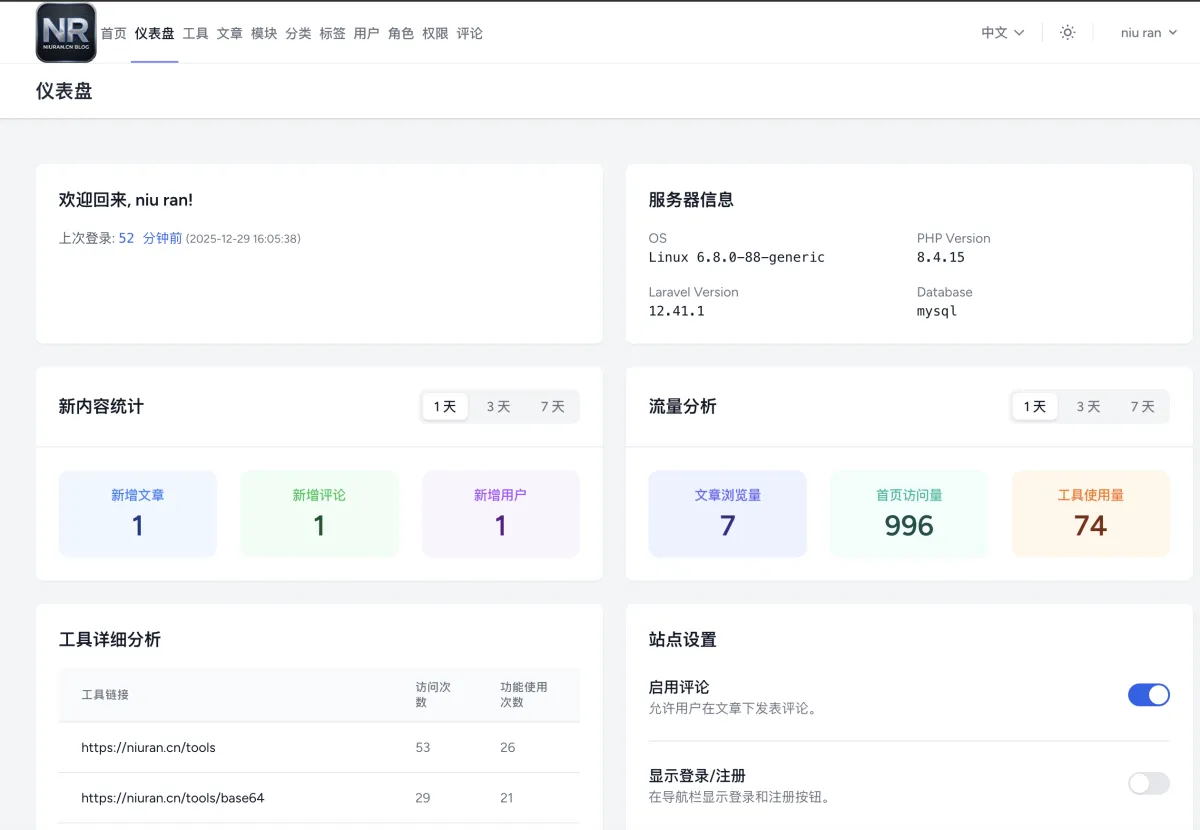 - 多语言: Laravel Localization (支持中英双语切换)。